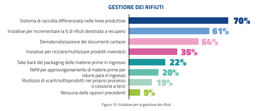 - Il 54% delle aziende intervistate redige un Report di sostenibilità, il 71% nella filiera.