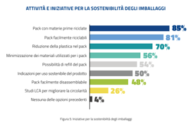 - Il 96% delle aziende intervistate dichiara di attuare almeno un’azione volta alla migliore sostenibilità degli imballaggi; un’attenzione analoga è stata riscontrata anche nella filiera.