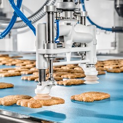 The Flowmodul can easily be integrated into a picker line, creating a flow-wrapping machine such as Schubert’s Flowpacker. The latter is on display at interpack and represents the latest TLM generation. The machine combines proven Schubert robotics and a stiffer frame, to name but a few advantages. Instead of using conventional belts, the flow-wrapping machine utilizes pick-and-place robots for product feeding, significantly reducing the required floor space. The Flowmodul, which is part of our TLM modular system, produces flow packs with a high flexibility in terms of sealing.