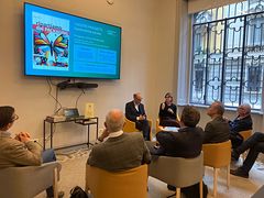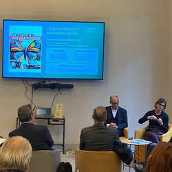 A dare il benvenuto presso la sede di Spazio Cosimo 10, Alessandra Fazio, Presidentessa di Istituto Italiano Imballaggio e Fondazione Carta Etica del Packaging.